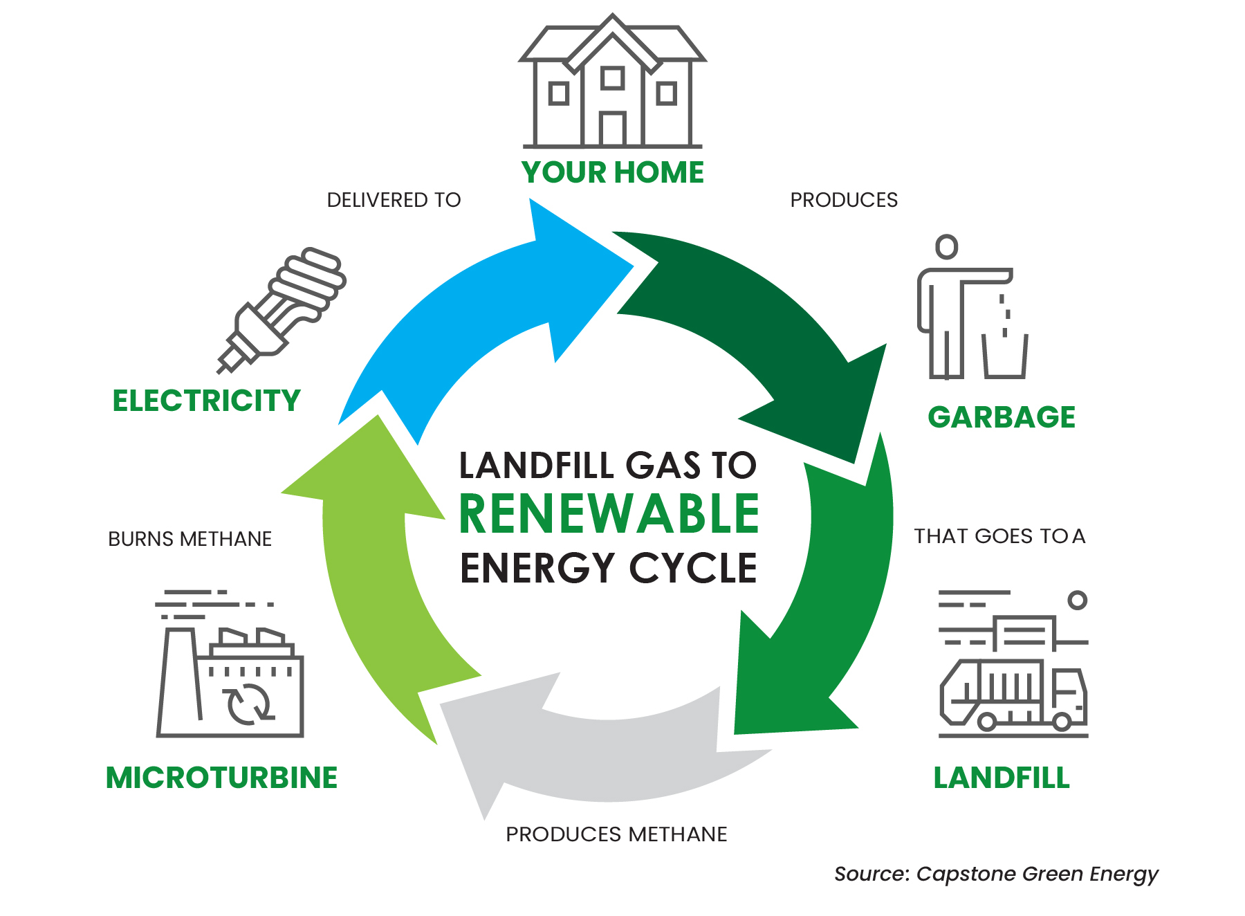 Capstone Green Energy Corporation, a global leader in carbon reduction and on-site resilient green Energy-as-a-Service (EaaS) solutions, announced that its distributor for the Upper Midwest, New England and Eastern Canada Vergent Power Solutions (www.vergentpower.com), has secured a contract to provide a one-megawatt microturbine system to be installed in a landfill gas-to-energy project for a solid waste facility in New England. The renewable energy project will convert the gas generated by waste at the landfill to electricity that will be redistributed to the electrical grid and utilized by the city to power its municipal facilities.