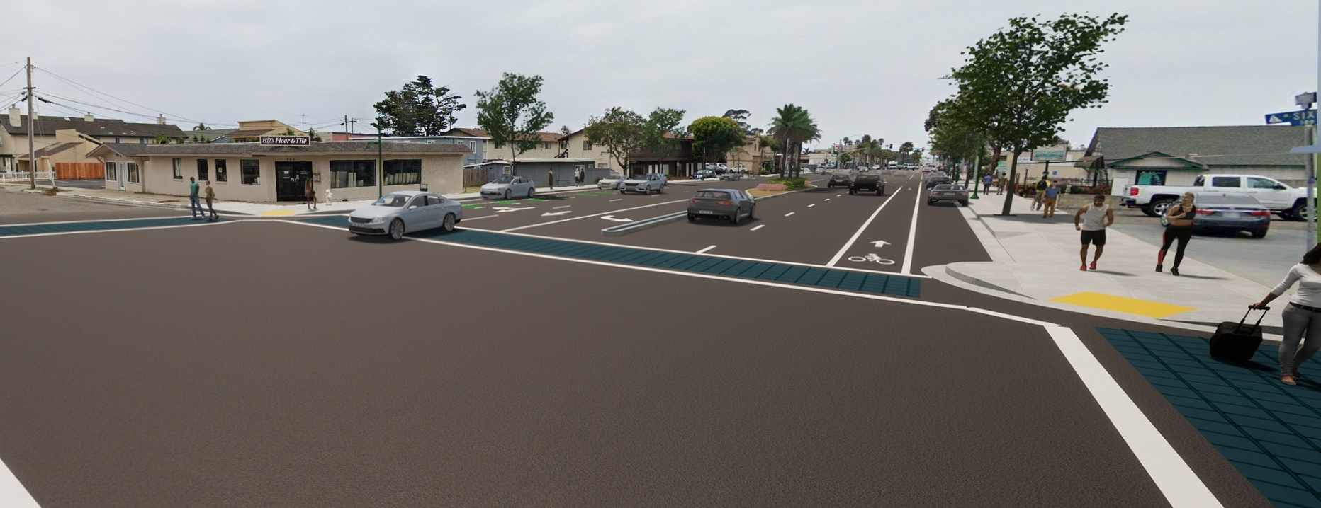 Guided by the West Grand Avenue Master Plan, adopted in 2011, the project’s key features include a new landscaped center median, new crosswalks with enhanced safety features, pavement rehabilitation, a painted bike lane, new streetlights, new storm drains, and more trees. Bronson adds that the city is also working with CalTrans (California Department of Transportation) to improve pedestrian access and safety where West Grand Avenue crosses State Highway 1 and ends at the coast. “We will see more demand for that crossing as we have more housing units, more residents, and more customers wanting to stroll a few blocks to enjoy our great beach,” he said.