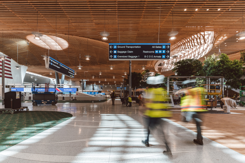 The numbers alone are staggering: the roof spans 400,000 square feet and includes over 400 glulam beams, each 80 feet long and curved—a feat never attempted at this scale in the United States. Beyond the beams, the roof features 36,000 pieces of latticework, each uniquely cut and fastened to create a stunning design visible beneath the surface.