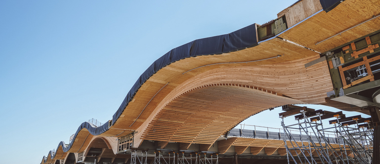 The numbers alone are staggering: the roof spans 400,000 square feet and includes over 400 glulam beams, each 80 feet long and curved—a feat never attempted at this scale in the United States. Beyond the beams, the roof features 36,000 pieces of latticework, each uniquely cut and fastened to create a stunning design visible beneath the surface.